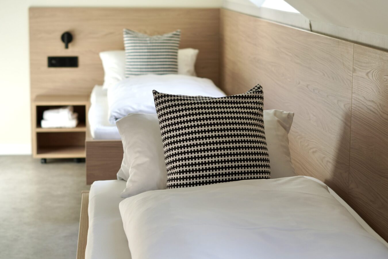 Chambre avec 3 lits singles, TV, bureau, armoire, porte-bagages