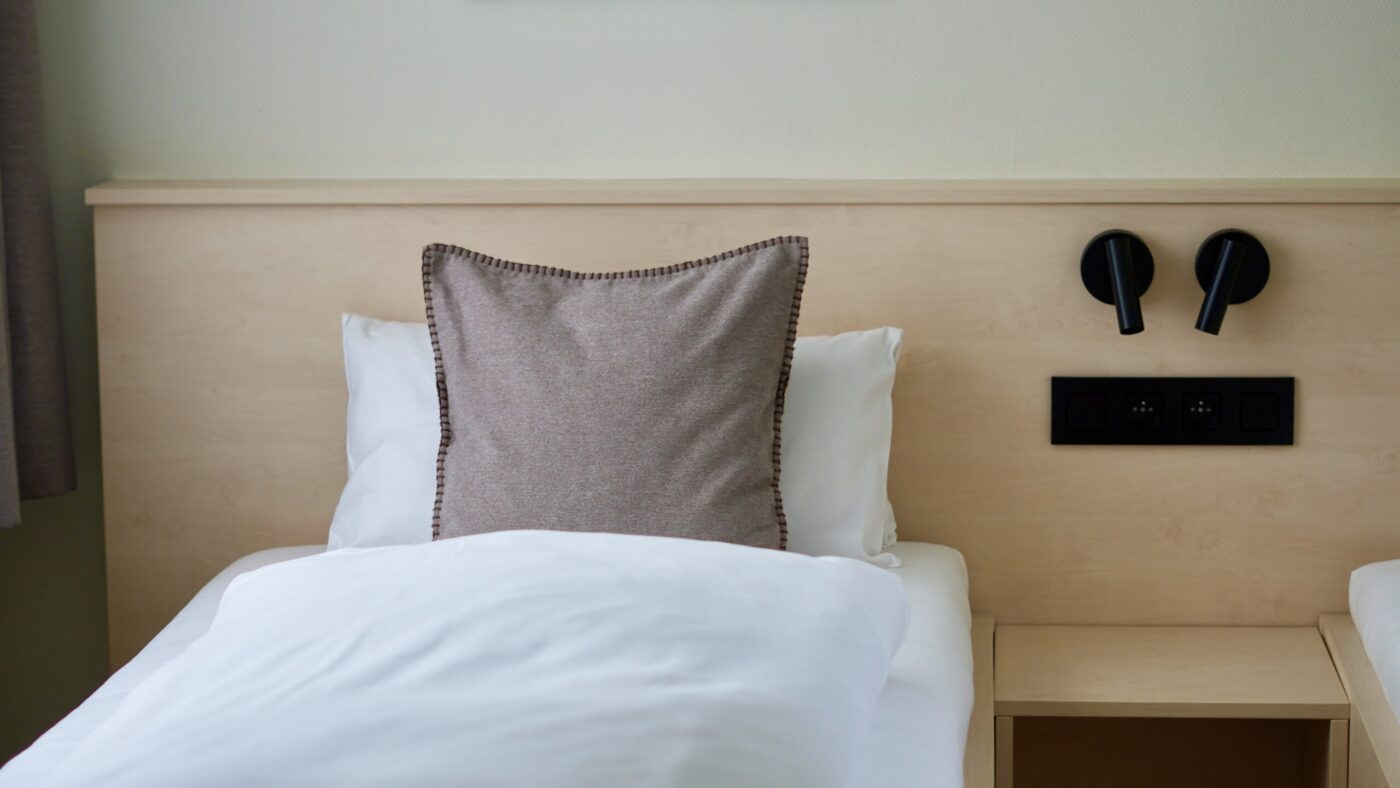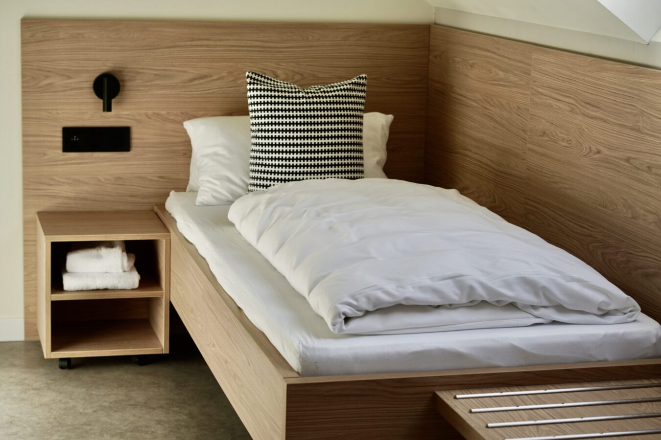 Chambre avec 3 lits singles, TV, table, armoire